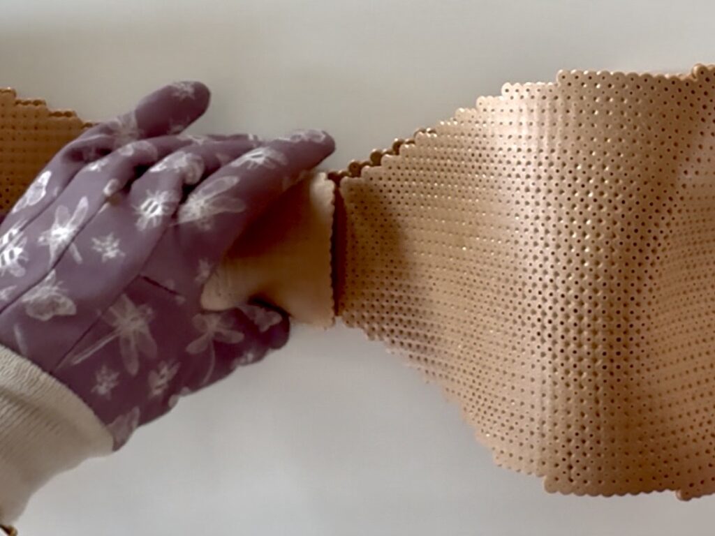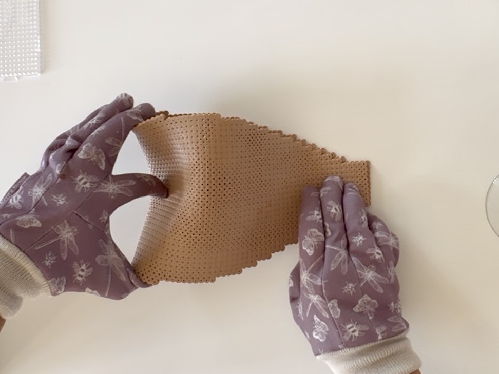 Til sløjfebåndet skal der bruges to kvadratiske plader der klikkes sammen, og dem skal du lave 2 stk. af.