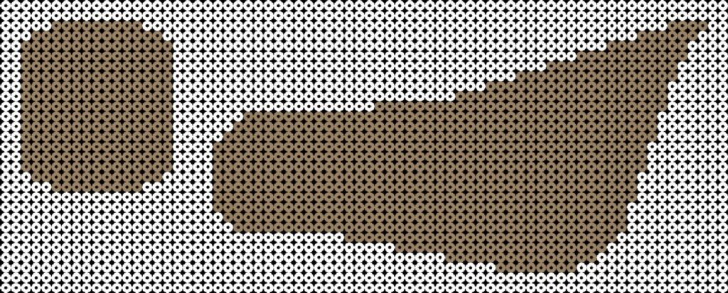 Den store sløjfedel skal der laves 2 stk. af. Du skal bruge 8 perleplader der klikkes samme til en rektangel.
