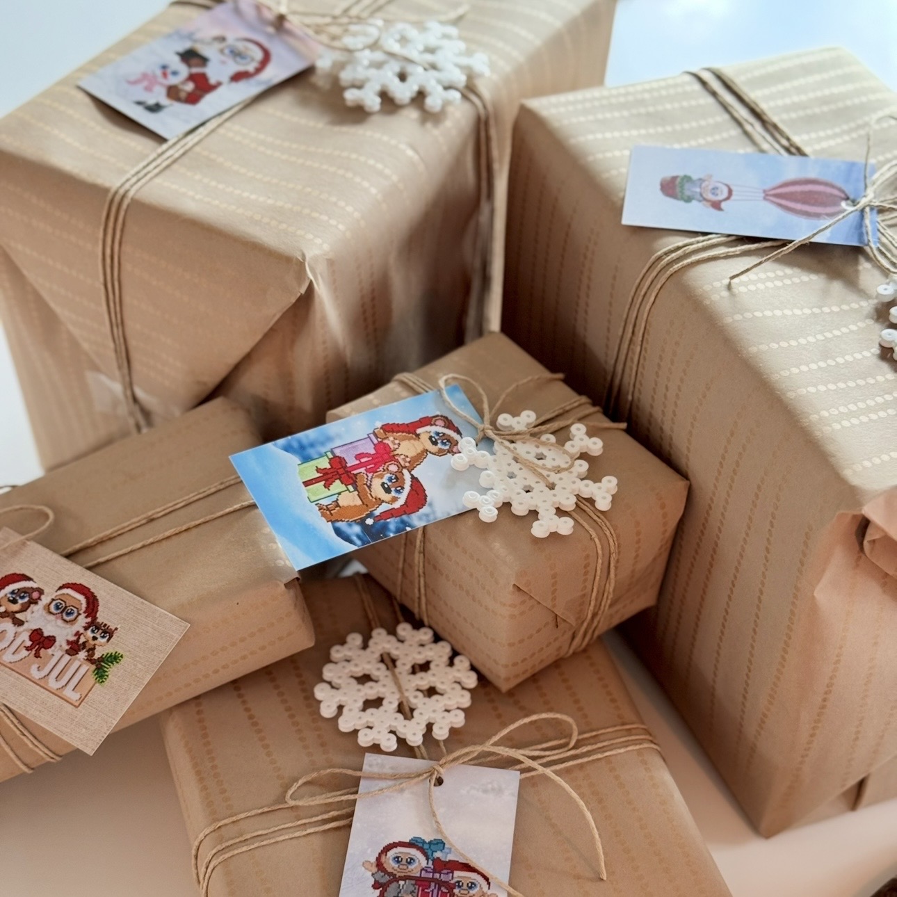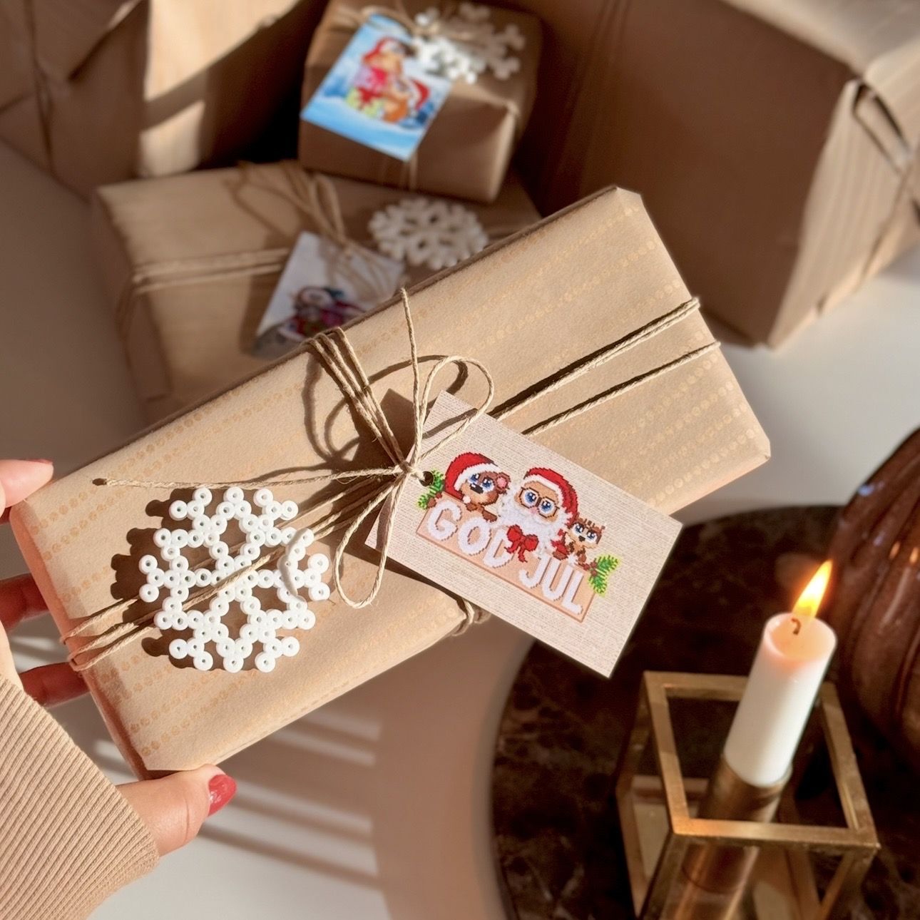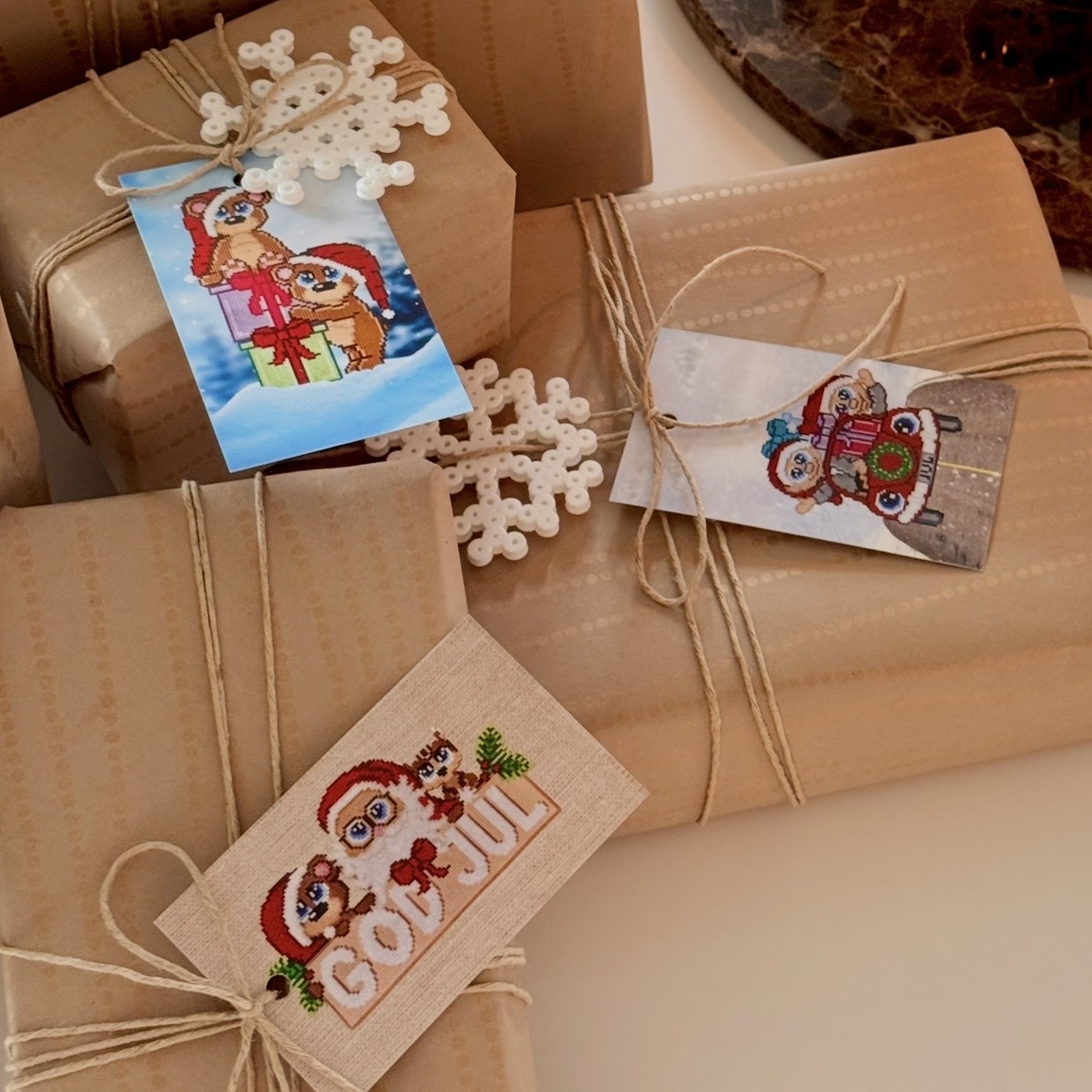 Disse søde gavemærker er perfekte som til & fra kort på alle julegaverne. De er lavet med juleperlerier fra ‘PERLEKALENDER’ bogen, så mange af de fine motiver vil være kendt fra bogen.