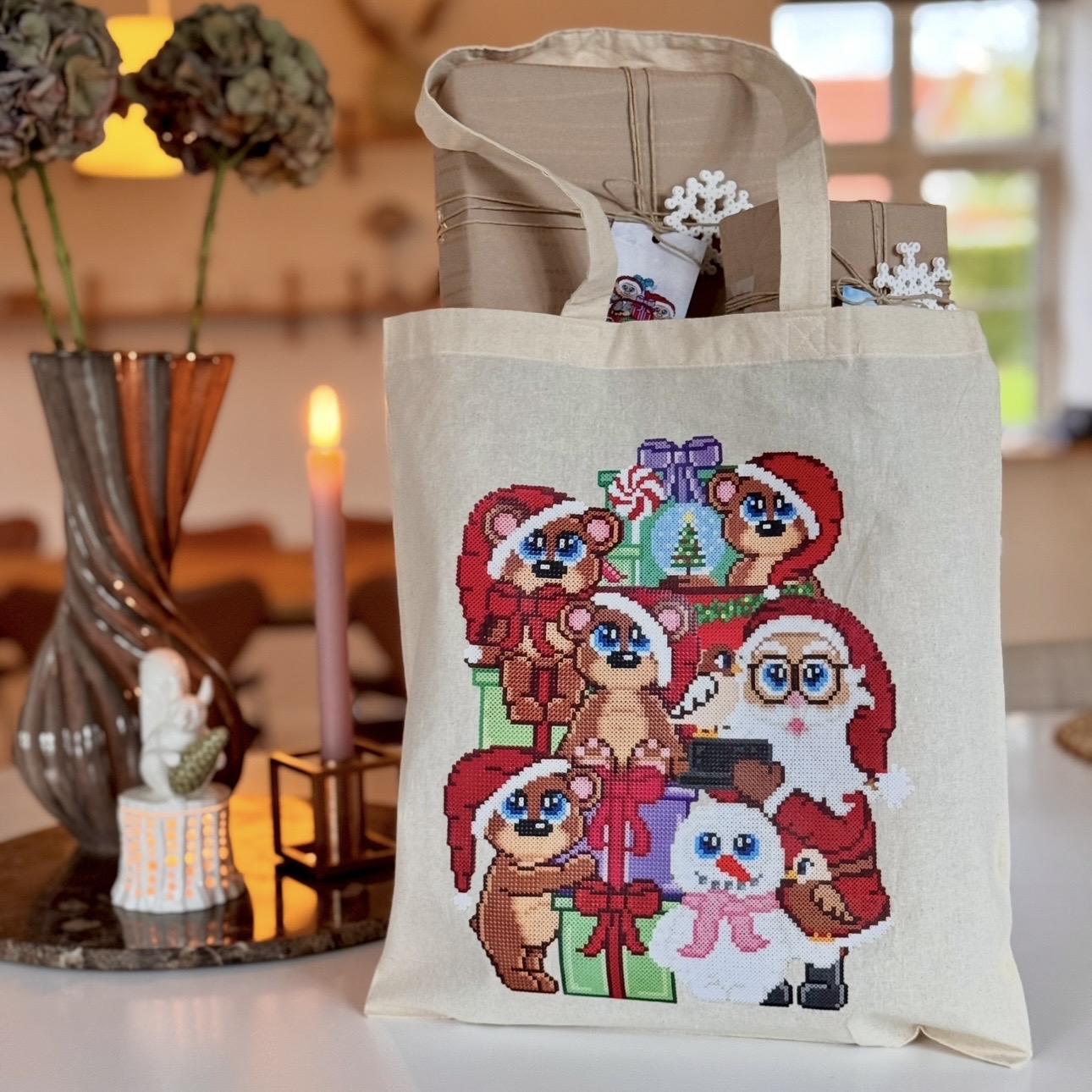 Den fine mulepose er trykt med mange af de søde motiver fra ‘PERLEKALENDER’ bogen.