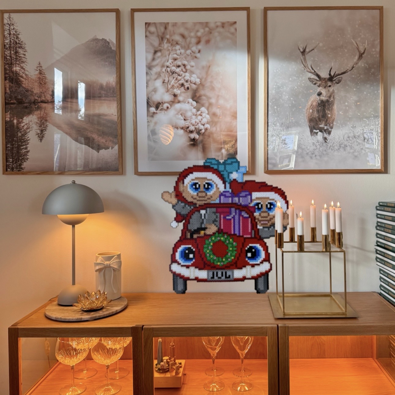 PERLEKALENDER rummer både store og små almindelige flade perlemønstre, men der er også flere forskellige 3D projekter i bogen, som uden tvivl vil pynte imellem julepynten. Her møder du blandt andet julemanden i forskellige udgaver, en masse søde julebamser og julemus, samt søde nisser og andre dyrevenner der hjælper på julemandens værksted.
